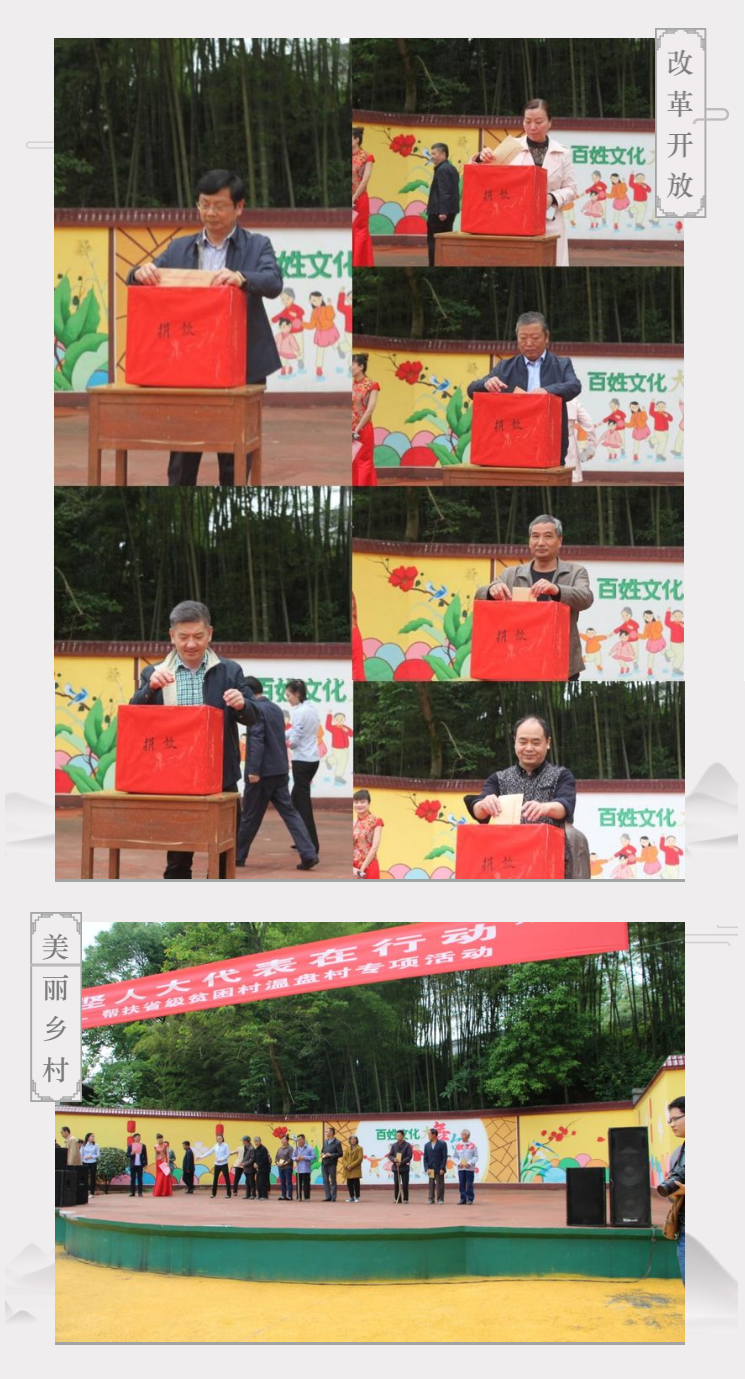 在捐赠仪式上,奉献爱心的热潮一浪高过一浪,各位领导和代表们纷纷慷慨解囊,依次将装着善款的信封投入捐款箱中。众人拾柴火焰高,活动最终筹集善款13.1万元,区人大常委会领导和人大代表现场将部分善款捐赠给了到场的10户贫困户,剩余善款将用于温盘村沿河景观游步道项目建设,交由温盘村村委会统筹安排。