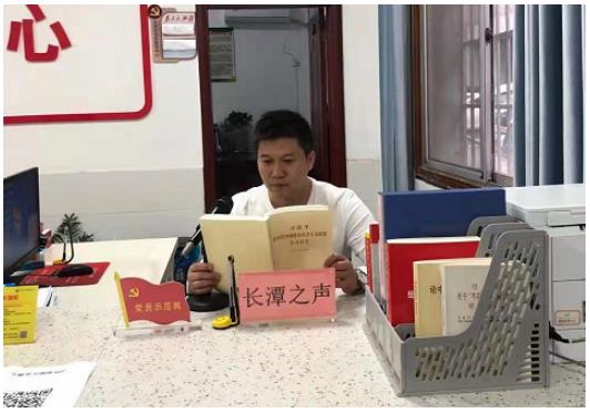 陶礼鹏到任之初,就发现成立了多年的长潭村村级广播站并未发挥应有的作用,于是随即完善设施设备,采取一网连接的方式,在长潭村11个组和安置小区、长潭老街等人口多的地方,共安装了14个扩音器,实现一只话筒全覆盖,并给广播站取了一个好听的名字叫“长潭之声”。几年来,广播站一直担负着为长潭村村民传递政治、经济、文化、科技、文艺娱乐等信息的作用,365天全年无休,深受老百姓的喜爱。而作为广播站播音员的陶礼鹏也成了村民称赞的党史教育宣传员、和美民风传播员、兼职农耕辅导员。