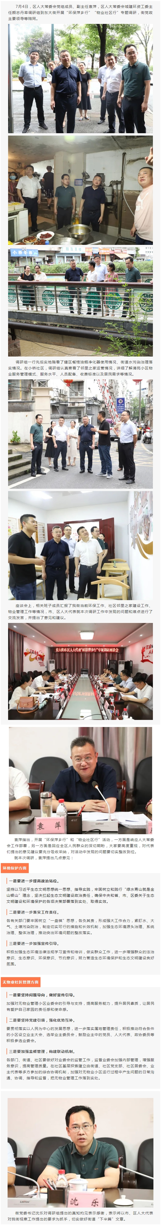 市、区人大代表调研组来到东大街开展“环保萍乡行”“物业社区行”专题调研