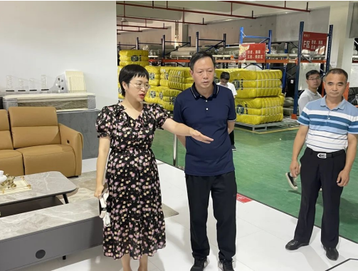 在喜临门过渡性厂房,调研组认真查看了厂房建设、设备安装、生产经营等情况,同时与项目负责人进行深入交谈,详细了解项目建设推进情况和项目建设过程中遇到的困难和问题,并现场研究解决。
